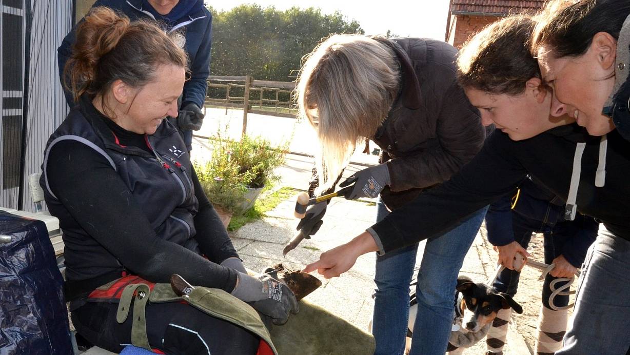 Schließlich müssen die Hufe zum Beispiel beim Springen über ein Hindernis oft mehr als eine Tonne Gewicht abfangen. Und auch, wer sich die Aufgabe am Ende trotzdem nicht zutraut, gewinnt bei einem solchen Kurs. „Durch das Basiswissen, das wir vermitteln, können Pferdebesitzer den Hufschmieden auch die richtigen Fragen stellen."