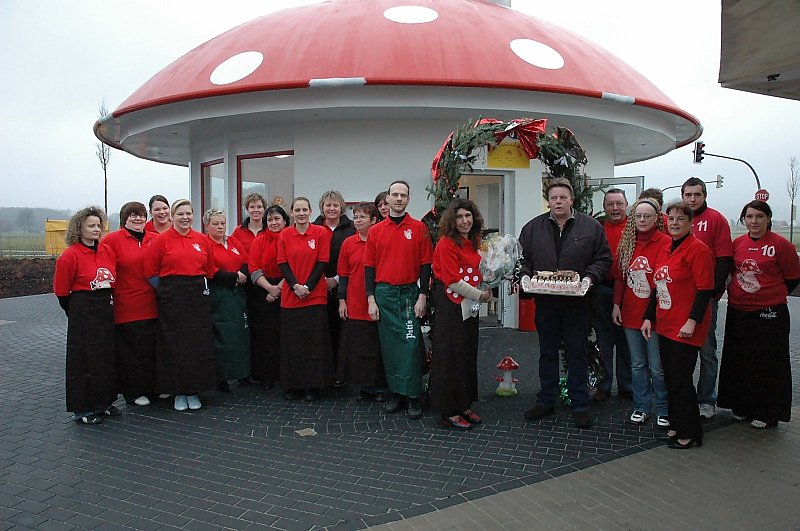 Die Person Maria Gottesmann ist ein Energiebündel, das sich mit beneidenswerter Ausdauer durchs Leben gebissen hat. Im Oktober 1979, die Spanierin war gerade 14 Jahre alt, baute der Versmolder Fritz Kottemann den kugeligen Pilz am Bahnhof auf. Maria Gottesmann arbeitete dort zunächst als Aushilfe und übernahm den Pilz sieben Jahre später. Mit 21 Jahren war sie bereits Geschäftsfrau. Zehn Jahre später bot der kleine Pilz auch Frühstück an. Der Pott Kaffee für eine Mark machte den Imbiss zur ersten Adresse für Brummi-Fahrer.