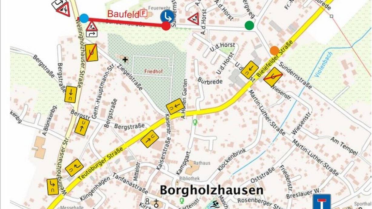 Die Arbeiten haben am Dienstag, 28. März, begonnen, wie die Stadt Borgholzhausen mitteilt. Ausführende Firma ist Chamier & Mauth aus Werther. Die Arbeiten dauern voraussichtlich bis Mitte April. Die Maßnahme wird vom Land NRW zu 65 Prozent gefördert. Dem Lageplan ist zu entnehmen, wo die Sperrung gilt und wie die Verkehrsteilnehmer sie umfahren können. Die Stadt Borgholzhausen bittet für die Maßnahme um Verständnis.