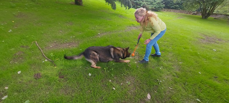 Borgholzhausen. Jonny, das sind 51 Kilogramm Lebendgewicht und pure Energie. Wer den Deutschen Schäferhund auf dem riesigen Anwesen von Dr. Catrin Segerath an der Meller Straße herumtollen sieht, wer sieht, wie er den Gast vom „Haller Kreisblatt“ zum Ballwerfen animiert, um dann in Windeseile hinter dem orangefarbenen Lieblingsspielzeug herzulaufen, glaubt kaum, dass sein Leben bis vor rund vier Monaten noch ganz anders aussah.