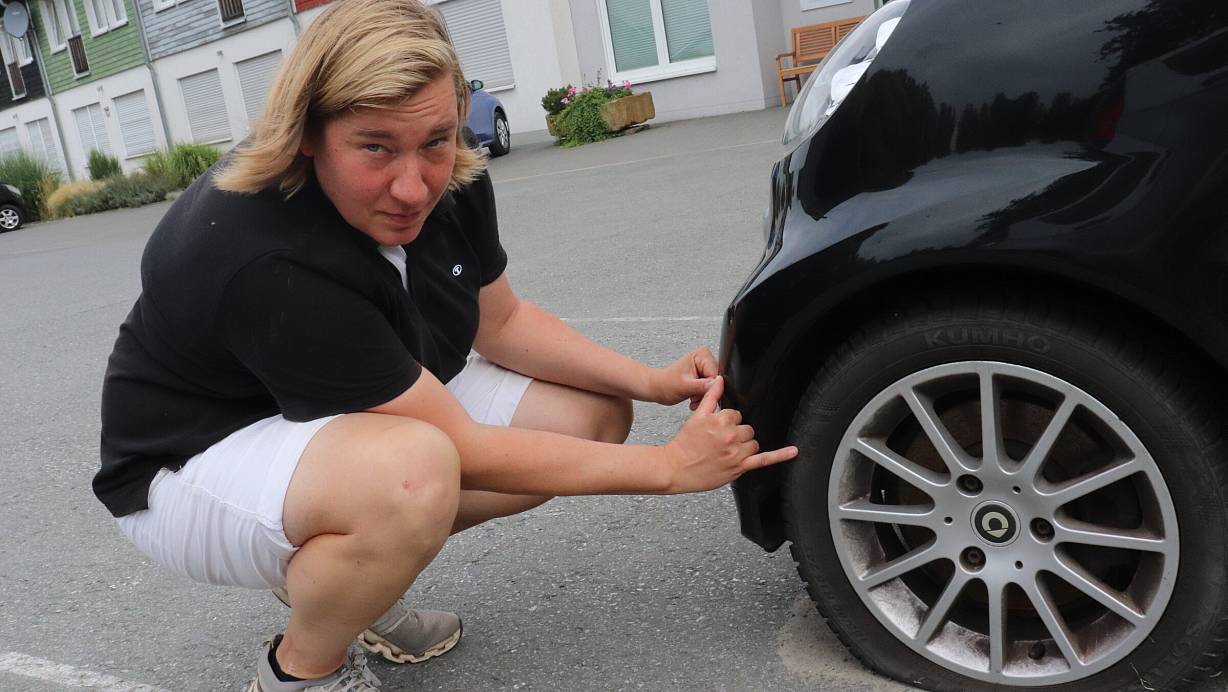 Vorderreifen – und auch Hinterreifen – des kleinen Smarts sind auf der Fahrerseite platt. Die Einstichstellen sind geschickt gewählt, musste Marina Schwarze feststellen. | © Alexander Heim