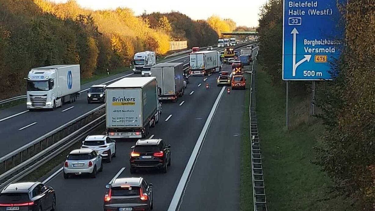 Borgholzhausen. Die A33 Osnabrück in Richtung Bielefeld war am Mittwoch, 5. November, den gesamten Nachmittag über zwischen Dissen-Süd und Borgholzhausen nach einem Unfall gesperrt. Der Stau betrug ab Dissen/Bad Rothenfelde zeitweise mehr als sechs Kilometer.