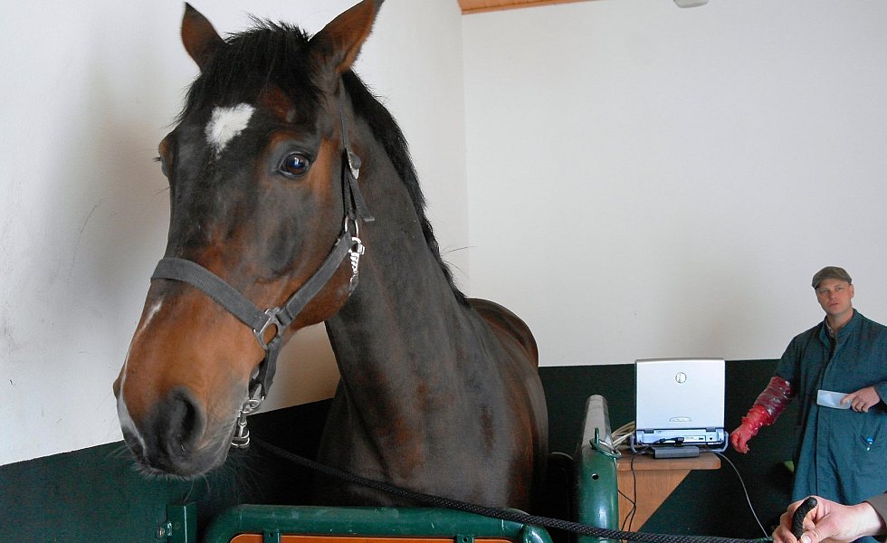 „Na wie gehts Easy? Ihr Fohlen sieht gut aus.“ Volker Janssen begrüßt in einer Versmolder Hofdeele, in die die frühe Morgensonne strahlt, den Besitzer der Warmblut-Stute. Sechs Wochen nach der Geburt ihres Nachwuchses soll Easy erneut künstlich besamt werden, um im nächsten Frühjahr ihr zweites Fohlen zur Welt zu bringen. Mittlerweile ist die künstliche Samenübertragung fester Bestandteil der Pferdezucht. Das Erbgut herausragender Hengste wird so verankert. Ihre Samen werden in speziellen Transportbehältern an Besamungsstationen oder Tierärzte in die ganze Welt verschickt. „Bis zu 24 Stunden kann der Samen mit Kühlakku bei vier bis sechs Grad im Behälter überleben“, weiß Dr. Janssen. Um den optimalen Zeitpunkt für die Besamung festzulegen und so die Wahrscheinlichkeit einer Trächtigkeit zu erhöhen, führt er eine gynäkologische Untersuchung der Stute mit seinem mobilen Ultraschallgerät durch.