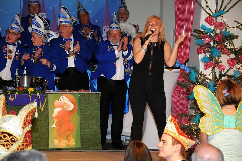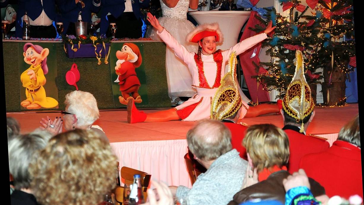 Begleitet von Thomas Venten am Keyboard ließ das Solo-Mariechen der »Fire Guardians« aus Neuenkirchen anschließend die Funken fliegen und sorgte dafür, dass die Jecken auf Tischen und Stühlen tanzten.
