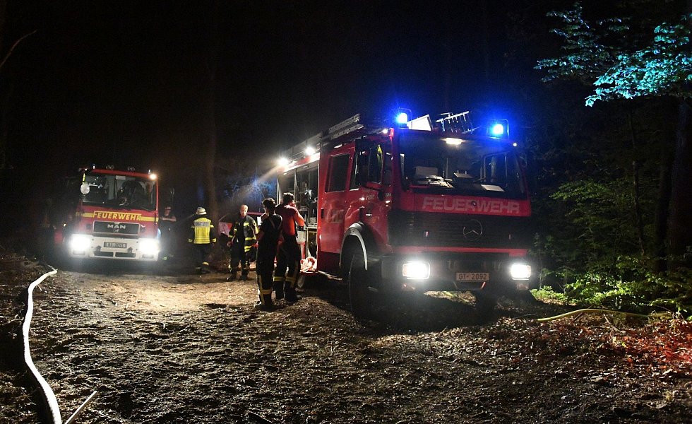Ab 20.40 Uhr klingelten die Telefone in den Feuerwehr-Leitstellen Bielefeld und Gütersloh ohne Pause – an insgesamt fünf Einsatzstellen mussten die rund 350 Feuerwehrleute aus Halle, Werther, Steinhagen, Bielefeld, Spenge und Enger am Samstagabend Waldbrände löschen. Einen Kleinbrand auf einer Fläche von etwa 50 Quadratmetern, konnte der Löschzug Künsebeck auf der Anfahrt zum eigentlichen Einsatzort mühelos ersticken.