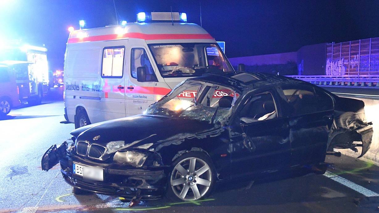 Der Wagen kam ins Schleudern und kollidierte mit der mittigen Schutzwand aus Beton. Der BMW wurde anschließend in die Luft katapultiert und überschlug sich mehrfach, bis er schließlich auf dem linken Fahrstreifen zum Stillstand kam. Die schwer verletzten Insassen konnten sich anschließend in Sicherheit bringen.