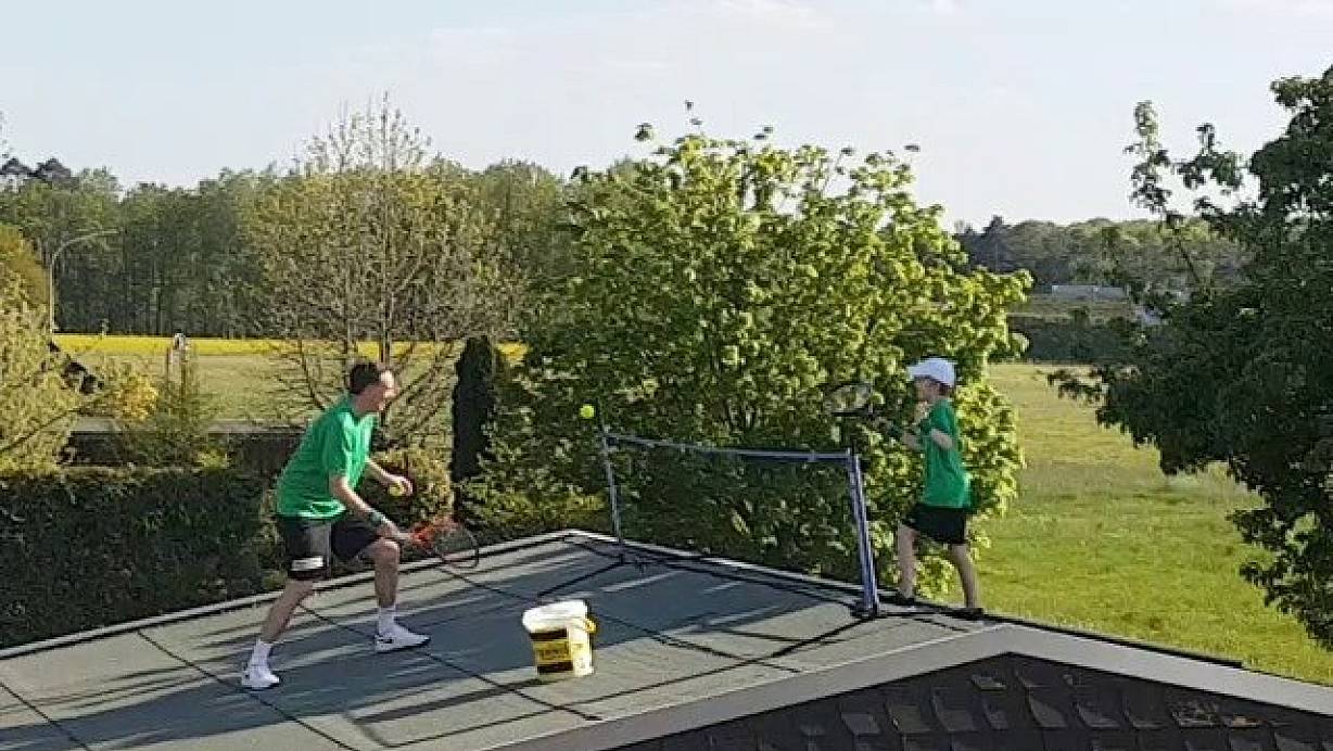 Ihren bislang spektakulärsten Stunt unternahmen die Horstmänner, als sie ihr Netz auf dem Dach ihres Geräteschuppens aufspannten. „Nicht ganz ungefährlich", gibt Volker Horstmann zu, „vor allem, weil ich im Gegensatz zu meinem Sohn nicht schwindelfrei bin." Am Ende hatten beide aber wieder sicheren Boden unter den Füßen und schickten ein Video dieser und anderer Aktionen via Instagram, WhatsApp und Co. um die Welt.