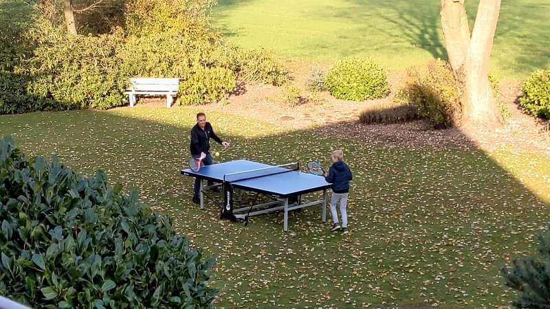 Und so haben Vater und Sohn schon auf abschüssigen Wiesen und abgeholzten Waldflächen im Teuto, vor Eisdielen , auf einer Autobahnbrücke oder der heimischen Tischtennisplatte ihr Gefühl für die gelbe Filzkugel unter Beweis gestellt. „Manchmal bleiben Leute stehen und fragen, ob sie es auch mal probieren dürfen", berichtet Volker Horstmann schmunzelnd. In Stukenbrock wagte sich das Duo kürzlich mit seiner Ausrüstung in einen kalten Bach. Als Netz diente ein umgestürzter Baumstamm, der von Ufer zu Ufer ragte.