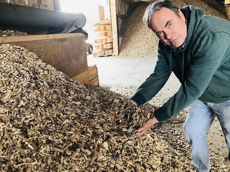 Für sein Projekt Holzhäcksel hat er seinen Architekten-Beruf an den Nagel gehängt. Er hat viel Geld in die Hand genommen und die nötigen Großmaschinen angeschafft: „Ich komme vom Bauernhof, das Arbeiten mit den großen Maschinen macht mir Spaß." Außerdem ist er überzeugt, mit Holzschnitzeln als Brennmaterial ökonomisch und ökologisch in jeder Beziehung die bessere Variante zu Gas und Öl zu haben. „Wir heizen unser Haus mit dem Häckselgut. Es läuft perfekt. Der Preis liegt etwa bei einem Drittel von Heizöl, es verbrennt umweltneutral, das Geld für die Energie bleibt in der Region und wir bearbeiten in der Regel nur Abfallholz. Außerdem werden neue Heizungsanlagen großzügig gefördert."