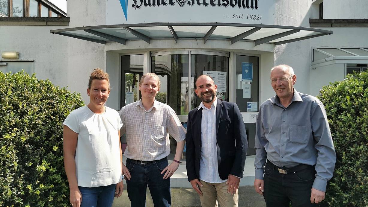 Svenja Hüls, Peter Sochart, Dominik Ehlers und Nicolas Behrens sind beim HK für den lokalen Anzeigenabsatz zuständig und können mit einer sehr beeindruckenden Zahl aufwarten. Gemeinsam betreuen sie im Verbreitungsgebiet unserer Zeitung in Halle, Borgholzhausen, Werther, Versmold und Steinhagen, rund 2.200 Kundinnen und Kunden.