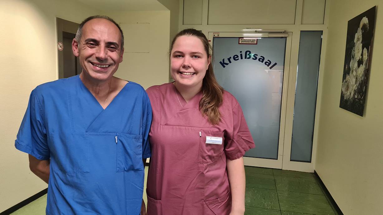 Belegarzt Jose Gonzalez und Hebamme Vera Schmidt sind stolz auf ihr Team und die Qualität von Geburtshilfe und Frauenheilkunde am Haller Krankenhaus. Und sie wünschen sich, dass ihre Arbeit auch anerkannt wird. | © Marc Uthmann