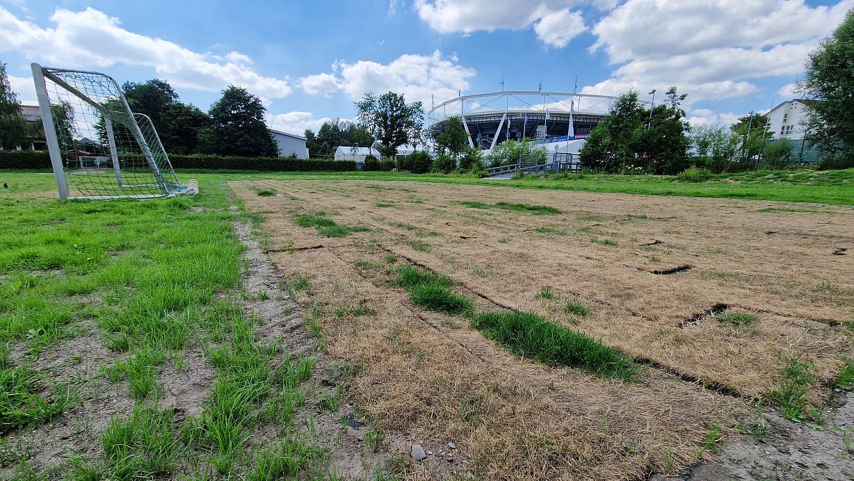 Der neue Rollrasen auf dem Osning-Sportplatz ist schon eingegangen. An den wenigen Hitzetagen in diesem Jahr hat es allerdings nicht gelegen. | © Uwe Pollmeier