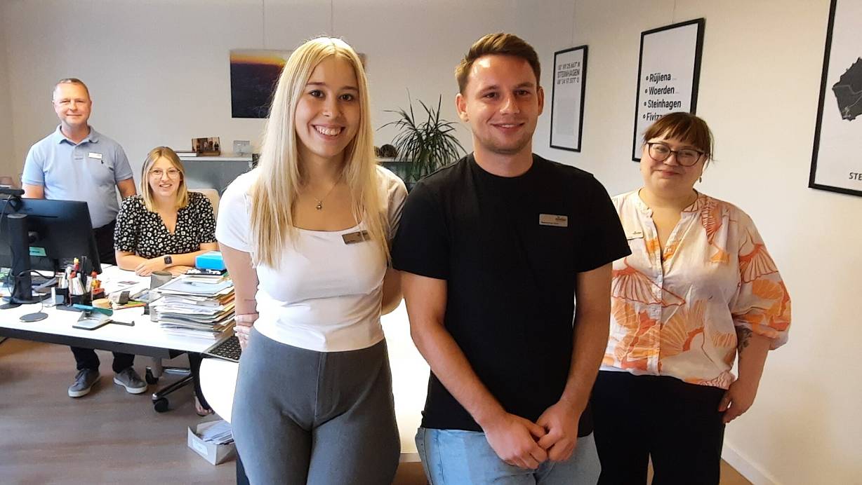 Am 1. August haben Lea Tatar und Maximilian Harz ihre Ausbildung begonnen. Die 20-jährige Oerlinghausenerin ist derzeit noch auf der Suche nach einer Wohnung in Steinhagen, der 23-jährige Harz stammt aus der Gemeinde. Beide wollen Verwaltungswirte werden.