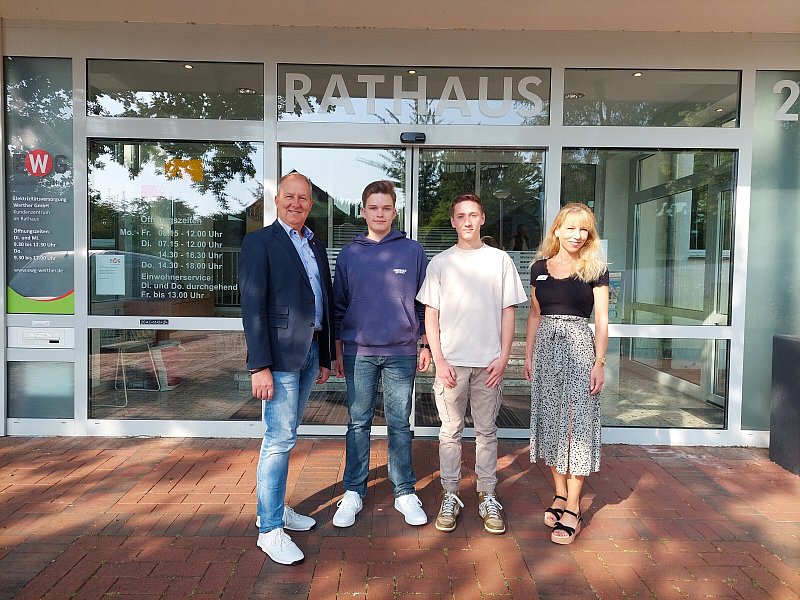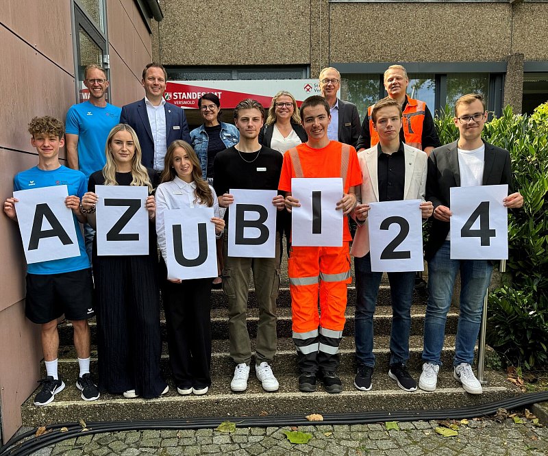 Im Parkbad hat Noel Stefanizzi (16) seine Ausbildung zum Fachangestellten für Bäderbetriebe begonnen. Auf dem Bauhof unterstützt Hendrik Stiegmann das Team. Der 16-Jährige absolviert die Ausbildung zum Straßenwärter. Erstmalig mit dabei waren bei der Begrüßung im Rathaus die Azubis der städtischen Tochterfirma, der Stadtwerke Versmold GmbH: Ben Hammer (19) und Nick Ekrot (20).