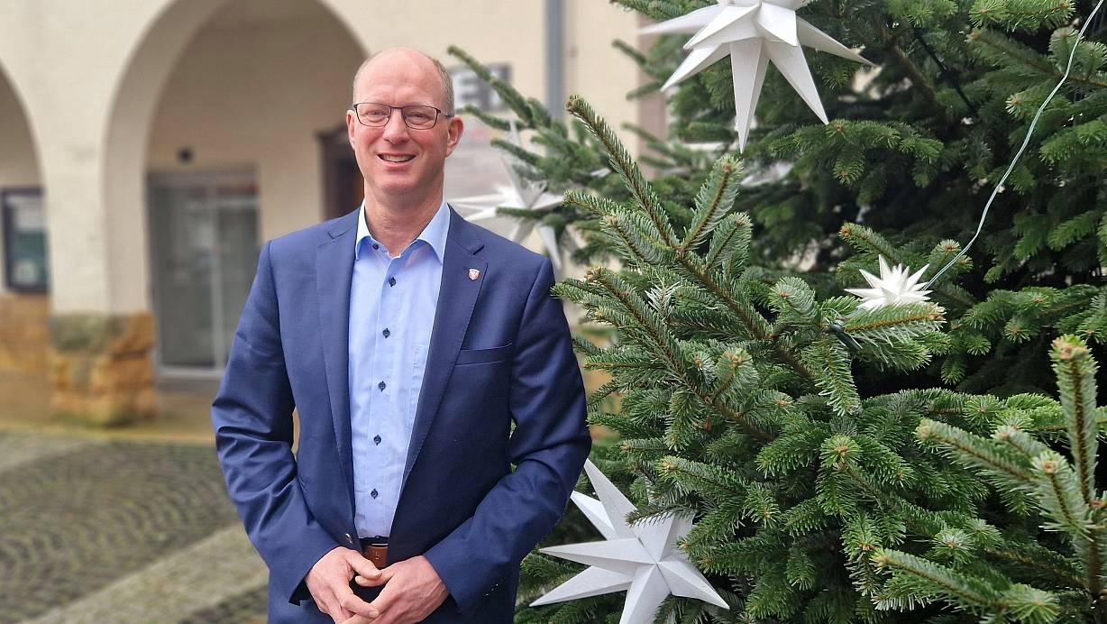 Halles Bürgermeister Thomas Tappe spürt nicht nur im Schatten des Weihnachtsbaumes nei allen schlechten Nachrichten viel Hoffnung. | © Uwe Pollmeier