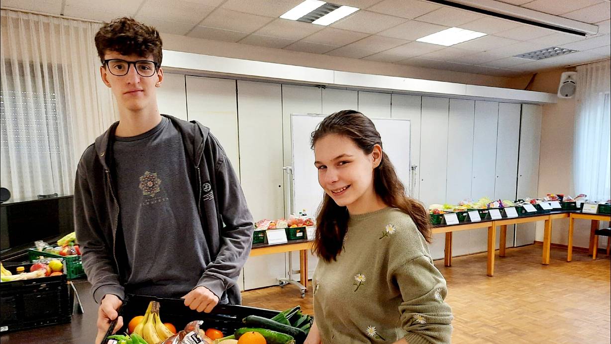 Leonie Wellner und Jonah Tomik helfen ehrenamtlich bei der Tafel in Halle mit. | © Melanie Wigger