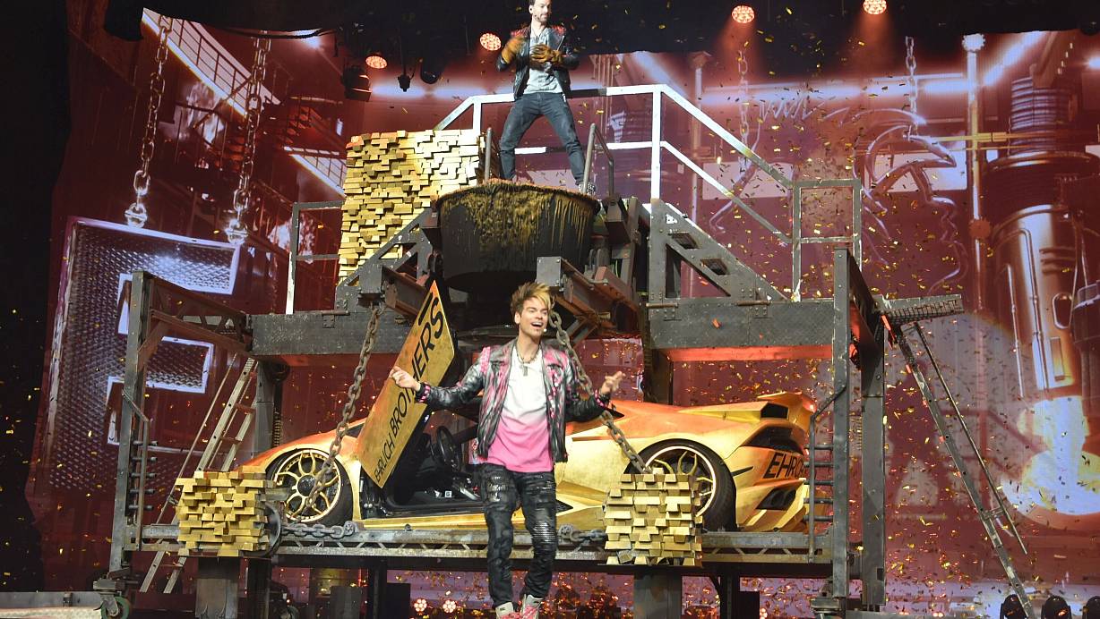 Die Ehrlich Brothers beim Heimspiel in der Haller OWL-Arena: Bei den Höhepunkten aus den vergangenen zehn Jahren darf die Nummer mit dem goldenen Lamborghini nicht fehlen. | © Birgit Nolte
