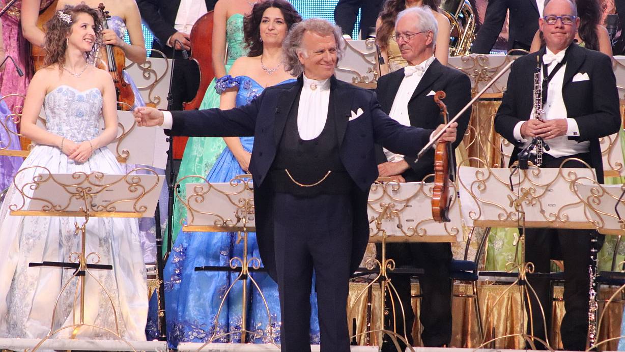 Seit Januar ist André Rieu mit seinem Johann-Strauss-Orchester auf großer Deutschland-Tournee unterwegs. Bei seinem Auftritt in der Haller OWL-Arena jubeln ihm 7.000 Fans zu.