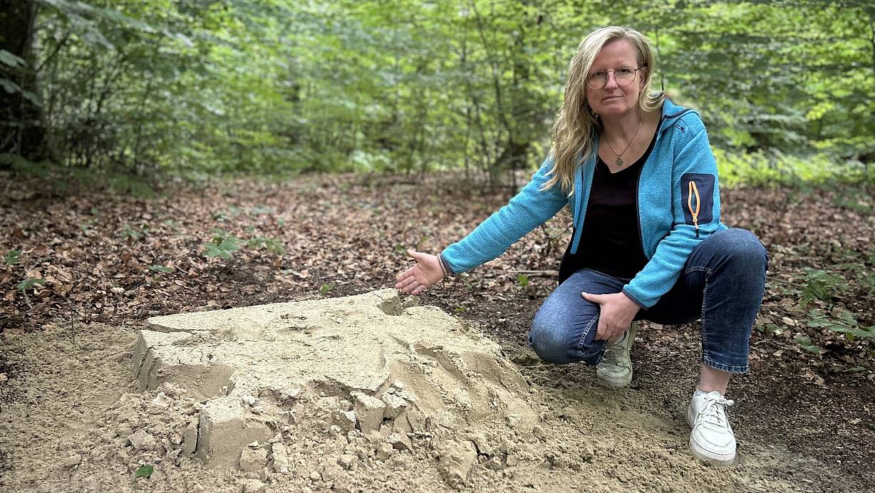 Sabina Kleinhans ärgert sich sehr über die beschädigten Beete am Prozessionsweg des Stockkämper Waldes. Nicht mal einen Tag lang blieben sie unversehrt. | © Tobias Barrelmeyer