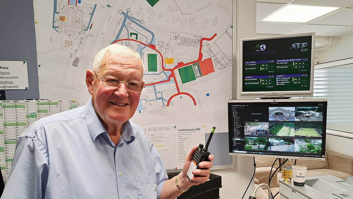 Halle. Rund 10.000 Besucherinnen und Besucher strömen in dieser Woche Tag für Tag wieder nach Halle, um die 32. Terra Wortmann Open zu verfolgen. Und das Funkgerät von Dr. Udo Kleine klingelt quasi in einer Tour – zwischendurch stimmen die Telefone und das Handy mit ein. Eine vermeintlich stressige Situation, aber der 79-jährige Leiter für den Bereich Sicherheit und Brandschutz wirkt trotz des Trubels im Gespräch mit dem „Haller Kreisblatt“ entspannt.