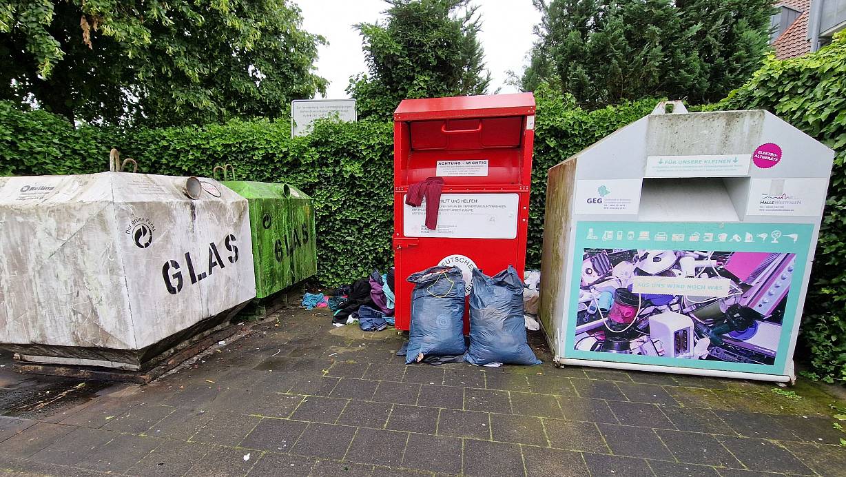 Die Container an der Dürkoppstraße in Künsebeck sind mal wieder voll. Das hält viele Menschen offenbar nicht davon ab, ihren alten Kleiderschrank-Inhalt sofort dort abzuladen. | © Uwe Pollmeier