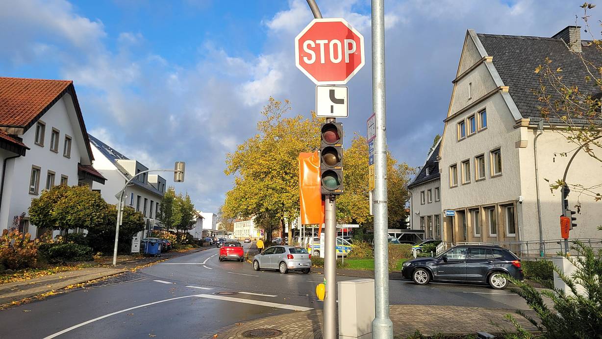 Wenige Minuten später stehe ich in einer Blechkarawane. Und muss jetzt realisieren, dass sich die Kreuzung von Kättkenstraße und Martin-Luther-Straße aufgrund der Bauarbeiten auf der Langen Straße zum neuen Nadelöhr entwickelt hat. Der Verkehr aus Richtung Bielefeld verlässt die frühere B68, nutzt die Martin-Luther-Straße, um dann über die Alleestraße den Bogen zu schlagen und später weiter in Richtung Borgholzhausen fahren zu können.