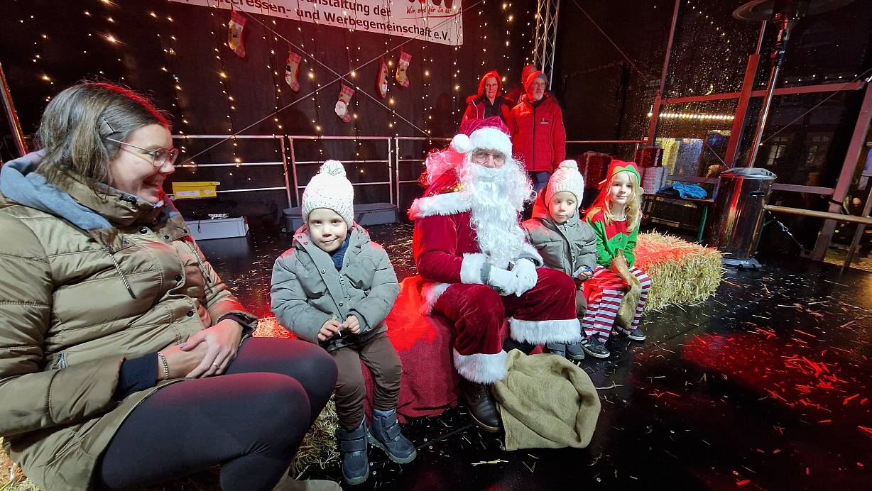 Die vierjährigen Zwillinge Leano und Noah holten sich in Begleitung ihrer Mutter Victoria Nolte ebenfalls ein bisschen Naschzeug ab. Unterstützung fand der Nikolaus in der Hexe, die traditionell am mystischen Hexenhaus Süßes verteilte.
