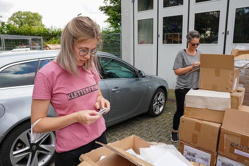 Anna-Lena hilft ihrer Mutter Beate Wolf beim Verpacken der Hilfsgüter. - © Privat