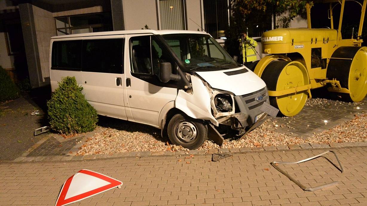 Steinhagen. Nicht so dramatisch, wie es offenbar per Notruf gemeldet worden war, waren am Samstagabend die Folgen eines Verkehrsunfalls am Kreisverkehr Bahnhofstraße Ecke Brockhagener Straße. Der Fahrer eines weißen Ford Transit verpasste die Ausfahrt Brockhagener Straße und fuhr auf den Vorplatz des Bauunternehmens Vollmer. Dort stoppte die historische Straßenbauwalze die Fahrt.