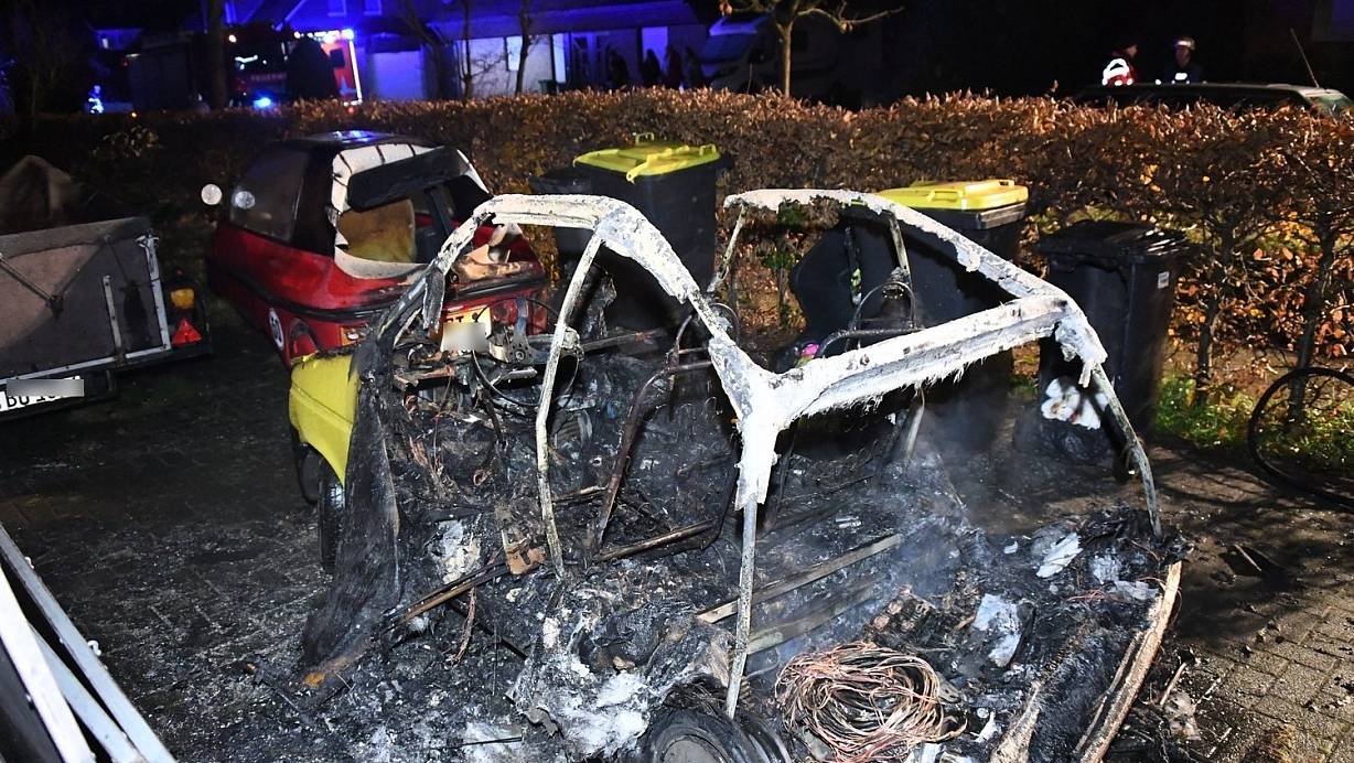 Immerhin schon 25 Jahre alt war das Elektroauto, dass am Donnerstagabend am Hilterweg in Steinhagen in Brand geriet. Ebenfalls ungewöhnlich: Die Feuerwehr musste zum Baumarkt fahren, um das optimale Löschmittel zu holen.
