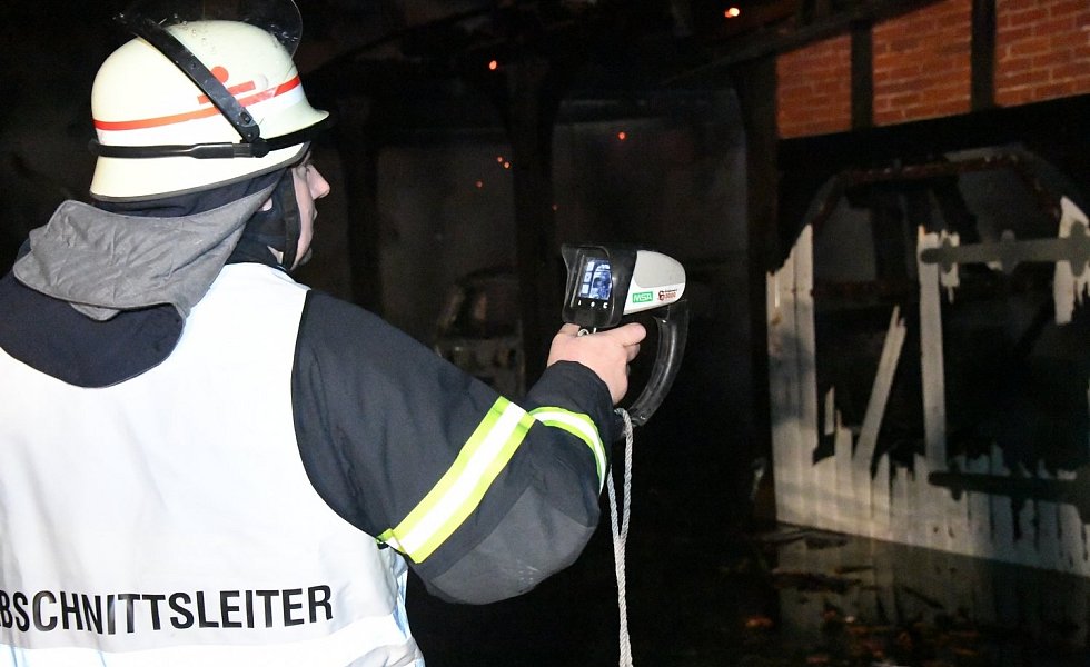Nach rund einer Stunde war das Feuer unter Kontrolle, die Feuerwehrleute mussten nur noch die Glutnester ablöschen. Mit einer Wärmebildkamera wurde der Erfolg der Löscharbeiten kontrolliert.