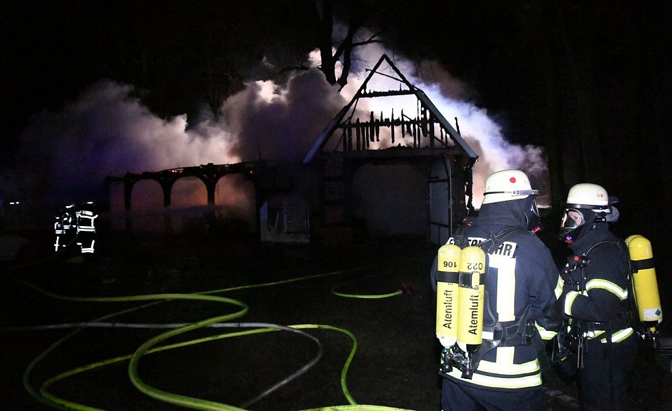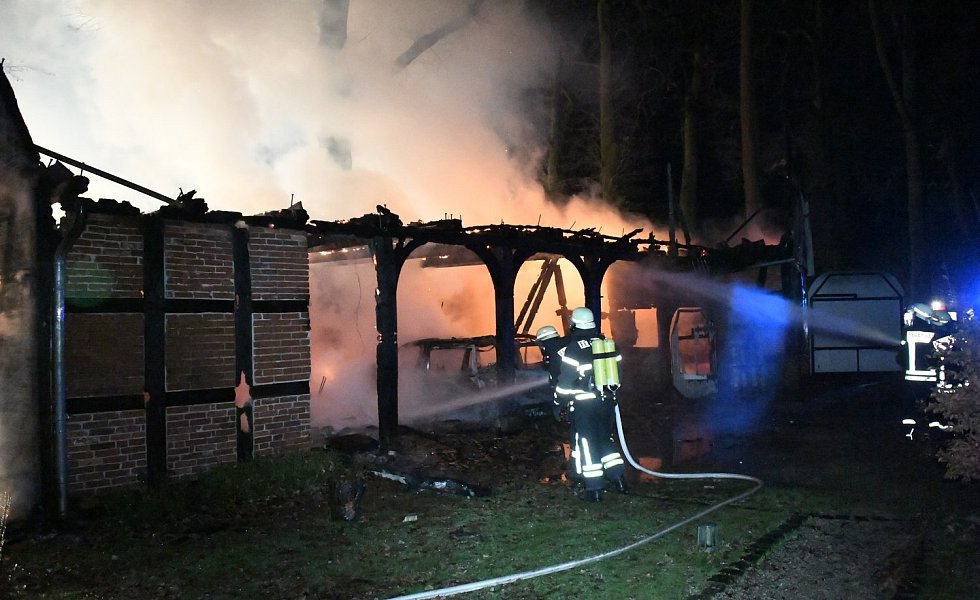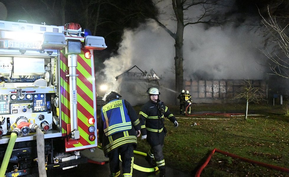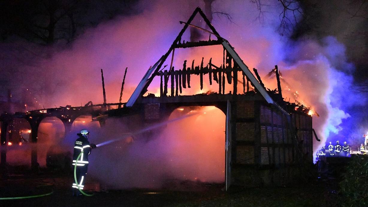 Steinhagen. An der Straße Am Kottenteich ist in der Nacht zum Dienstag eine unter Denkmalschutz stehende Scheune komplett abgebrannt. Die Feuerwehr war mit etwa 60 Einsatzkräften aus allen drei Löschzügen vor Ort, viel zu retten gab es aber nicht.
