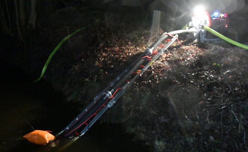 Während die ersten Feuerwehrleute mit der Brandbekämpfung begannen, verlegten andere etwa 1000 Meter Schlauchleitungen. Für eine kontinuierliche Wasserversorgung wurde der mehrere hundert Meter entfernte Abrooksbach angezapft und das Löschwasser durch die Schlauchleitung zum Einsatzort transportiert.