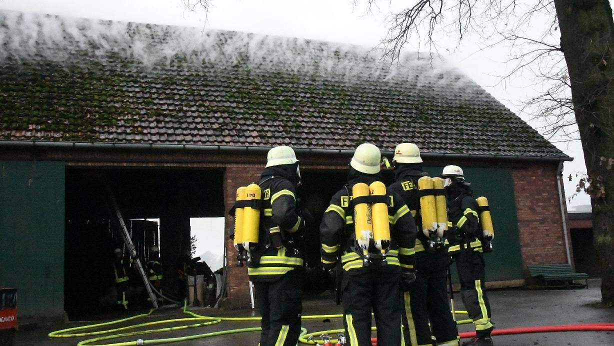 Steinhagen. Großeinsatz der Feuerwehr an der Ströher Straße am Vormittag des zweiten Weihnachtsfeiertages: Vermutlich nach einem Defekt an der Heizungsanlage waren Heu- und Stroh im Bereich des Schornstein einer Scheune in Brand geraten. Um 10.50 Uhr wurde die Feuerwehr alarmiert.