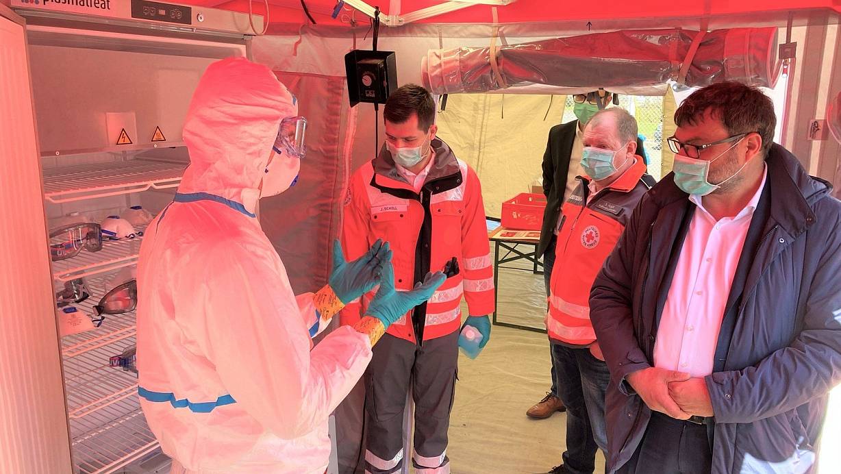 Bei den Automaten handelt es sich um umgebaute Kühlschränke, die mit Plasma geflutet werden. „Die Schutzbrillen und Schutzmasken werden in den luftdichten Schrank gelegt. Das ganze Verfahren dauert dann etwa 45 Minuten", beschreibt Uwe Kippnich, Koordinator für Sicherheitsforschung beim BRK das Prozedere. „Auf diese Weise können wir mit einem Schrank 2.000 Masken innerhalb von 24 Stunden wiederaufbereiten", so Kippnich. Künftig könnten auch Beatmungsschläuche auf diese Weise dekontaminiert werden, damit sie erneut zum Einsatz kommen können.