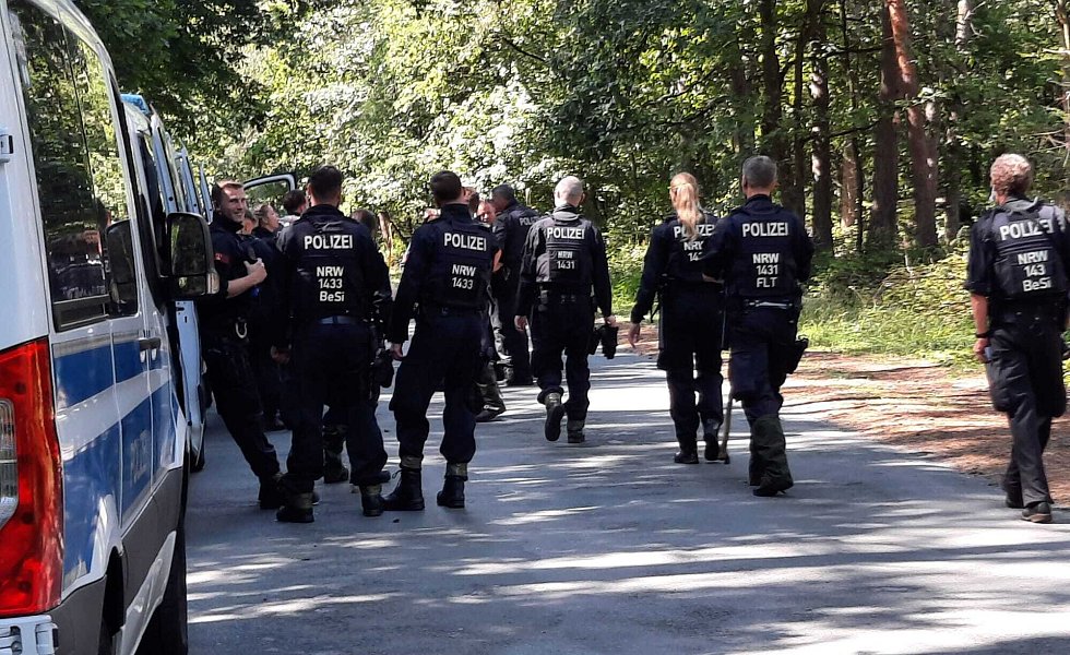 Eine Hundertschaft aus Bochum durchkämmte die Gegend in Steinhagen im Bereich Osterfeldstraße, Erfurter Straße und Unterer Steinweg. Auch rund um den Campingplatz am Quellesee waren die Beamten im Einsatz.