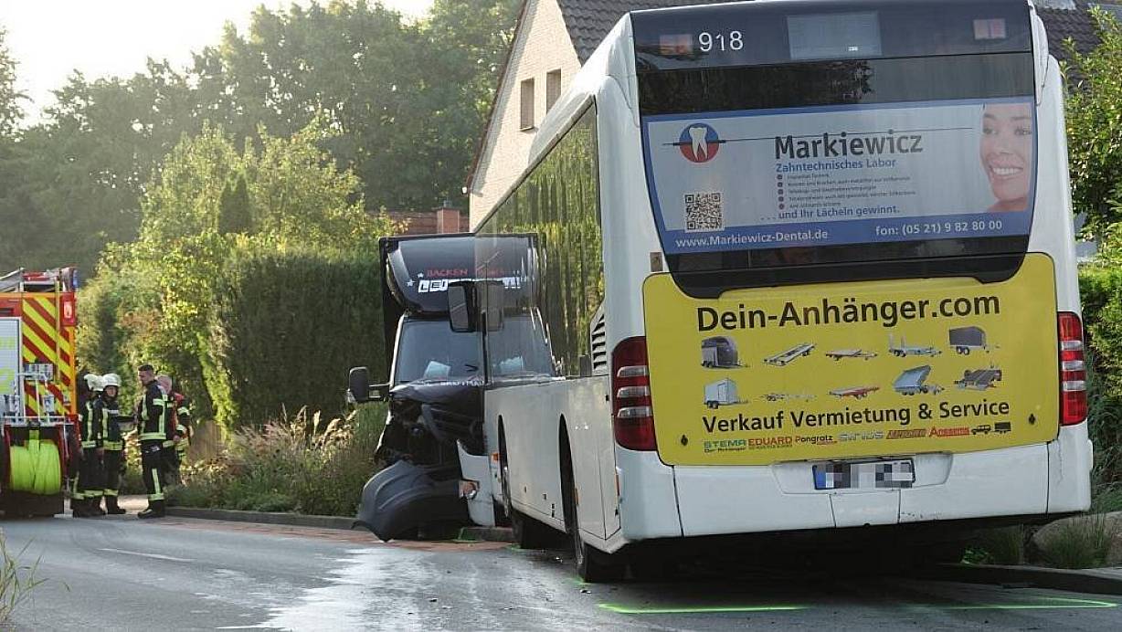 Ein Steinhagener Busfahrer hat in Bielefeld eine Spur der Verwüstung hinterlassen. Er stieß dabei auch gegen einen Lkw. | © Paul Brinkmann