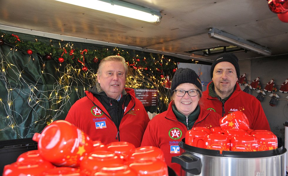 Es bleibt bei Temperaturen leicht unter dem Gefrierpunkt an diesem Wochenende. Damit es nicht zu frostig wird hilft - natürlich - Glühwein. Der bleibt bei Preisen zwischen 2 und 3,50 Euro erschwinglich und wärmt bekanntlich von Innen. Wer sich Hände und Füße am Feuer wärmen möchte, schaut im Zelt des Pfadfinderstammes Roter Milan auf dem Marktplatz vorbei. „Neben Bratwurst und Steak haben wir in diesem Jahr auch Grillkäse für Vegetarier", lockt Dominique Witte.