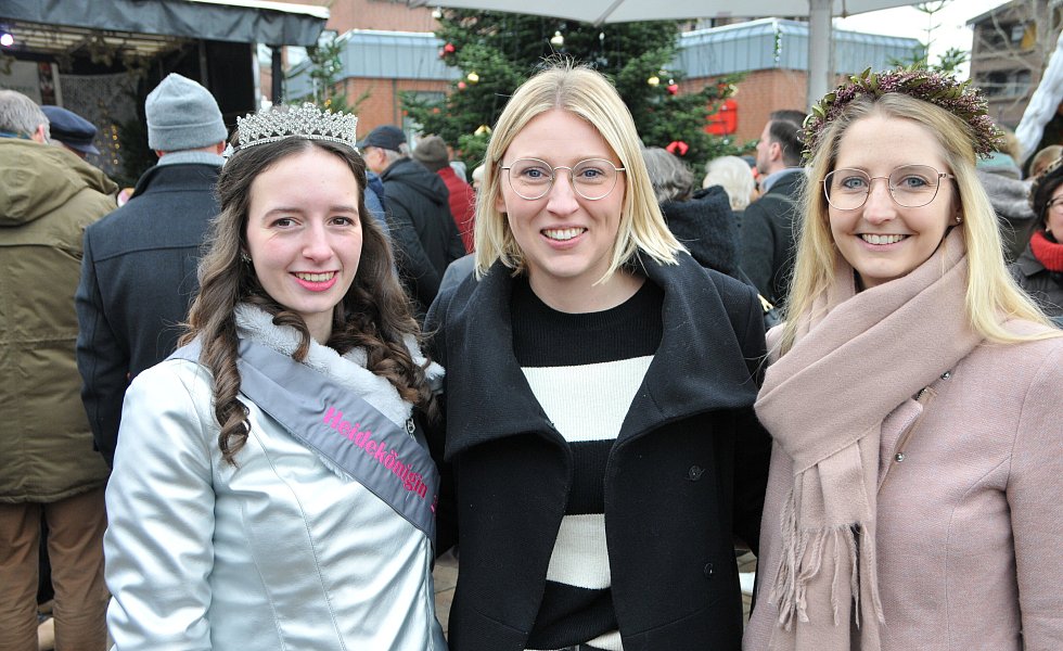 Einen praktischen Tipp gegen die Bibber-Temperaturen hat Heidekönigin Lilith: Die kam zur Weihnachtsmarkteröffnung in Skihose - und hatte ihr elegantes heidefarbenes Kleid einfach darüber angezogen.