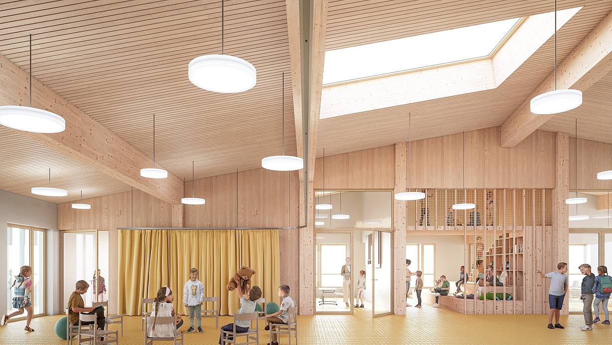 Weite Räume, sogenannte "Lerncluster", sollen den Innenraum der neuen Grundschule Brockhagen prägen. | © daily space