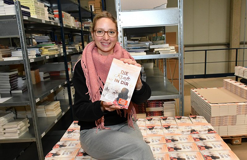 Steinhagen. Auf den ersten Blick sieht es so gar nicht nach erfülltem Schriftstellertum aus: Vanessa Göcking verbringt eine komplette Arbeitswoche damit, in einem großen Versand-Buchlager zu sitzen und ihren neuesten Roman „Die Kraft in dir“ zu signieren. Der Eindruck täuscht. Die 32-Jährige ist mit Enthusiasmus bei der Sache. Fünf Tage lang sitzt sie acht Stunden täglich an einem Schreibtisch, mitten in einer umtriebigen Logistikhalle des Steinhagener Verlagsauslieferers Runge und schreibt.