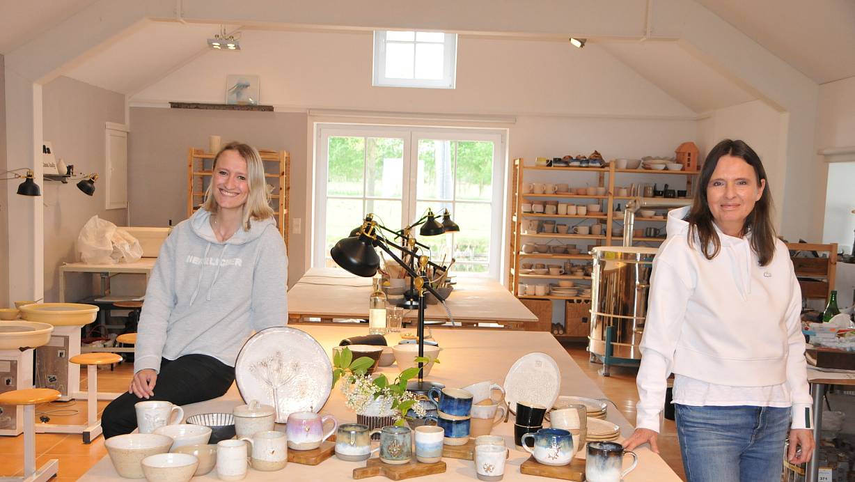 Barbara Mietz-Steinmann und ihre Tochter Lorena in dem Atelier in Steinhagen. Hier bieten sie Töpfer-Kurse an. | © Frank Jasper