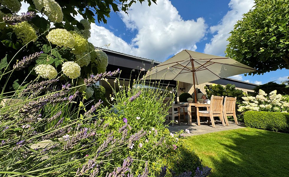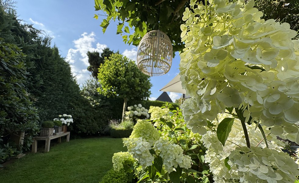 „Das war gar nicht so einfach. Denn der Boden hier ist sehr sandig. Gerade meine geliebten Bauernhortensien, die viel Wasser benötigen, machten schnell schlapp. Darum habe ich sie gegen hitzeverträgliche Stauden und Rispenhortensien ausgetauscht“, erzählt die begeisterte Hobby-Gärtnerin. Die kommen mit dem trockenen Boden besser klar.