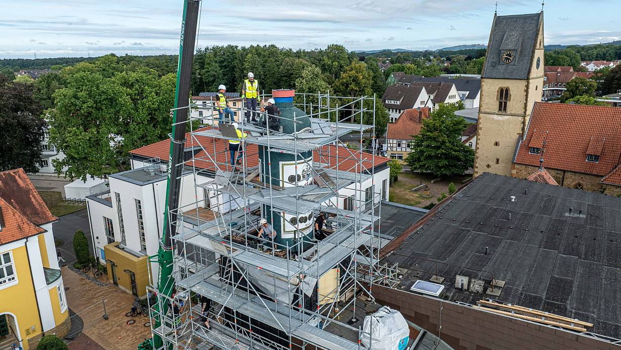 Frühestens um 9.30 Uhr soll die Kruke am Spezialkran hängen. Zwischendurch soll für Interessierte etwas Zeit bleiben, das Kunstwerk aus nächster Nähe zu betrachten.