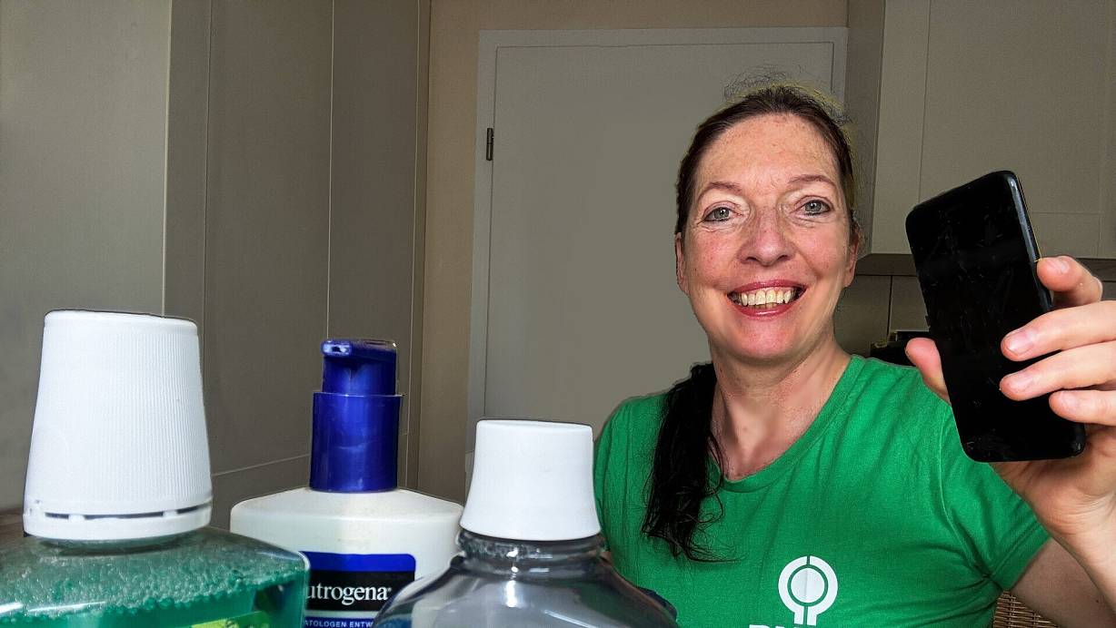 Die Steinhagenerin Birgit Lutzer (58) erklärt eine App, die Schadstoffe in Kosmetik aufdeckt. | © Birgit Lutzer