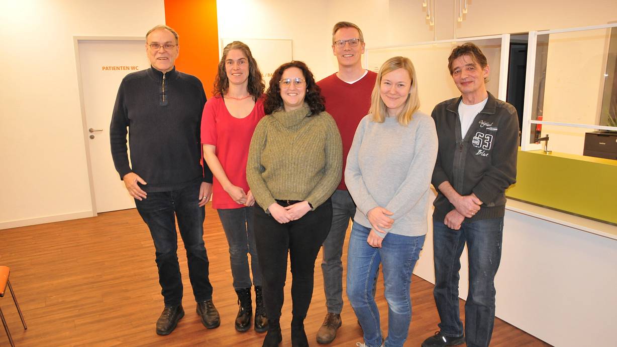 Apotheker Lutz Heitland (v. l.), Hausärztin Carolin Saada, leitende MFA Christine Onaran, Hausarzt Kai Kleinholz, Apothekerin Christina Heitland und Hausarzt Alexander Hirsch. | © Frank Jasper