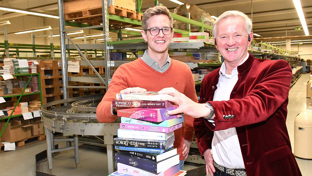 Dieter und Jonas Seggewiß feiern das 75-jährige Jubiläum der Runge VA in Steinhagen und geben Einblicke in den Buchlogistik-Alltag. | © Jonas Damme