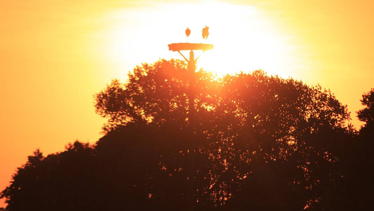 Noch ist es früh. Die Sonne geht unter. Direkt hinter dem Storchennest. Ich nutze die Gelegenheit und schieße ein Silhouetten-Foto. „So ein Bild hat vielleicht noch keiner gemacht", hoffe ich im Stillen, zumindest habe ich bei den zahlreichen Veröffentlichungen bisher noch keines in dieser Art gesehen. Ich steige auf den Aussichtsturm. Zum Glück bin ich früh. Denn die ersten Mondbeobachter haben bereits Position bezogen. Mit Kameras und Ferngläsern. Ich poste ein Foto von meinen Kameras bei Facebook. Eine gute Idee, um die besten Fotospots andernorts in Erfahrung zu bringen. Inzwischen ist es 21.20 Uhr. Der Mond lässt auf sich warten. „Er hat Verspätung", sagt ein Mitfotograf. „Ob der Standort richtig ist?", fragen wir uns. Schließlich brauchen wir freie Sicht auf den Horizont. Am Aussichtsturm versperren ein paar Büsche und Bäume die Blicke. Auch Minuten später ist nichts vom Mond zu sehen. Ich beschließe, den Standort zu wechseln.