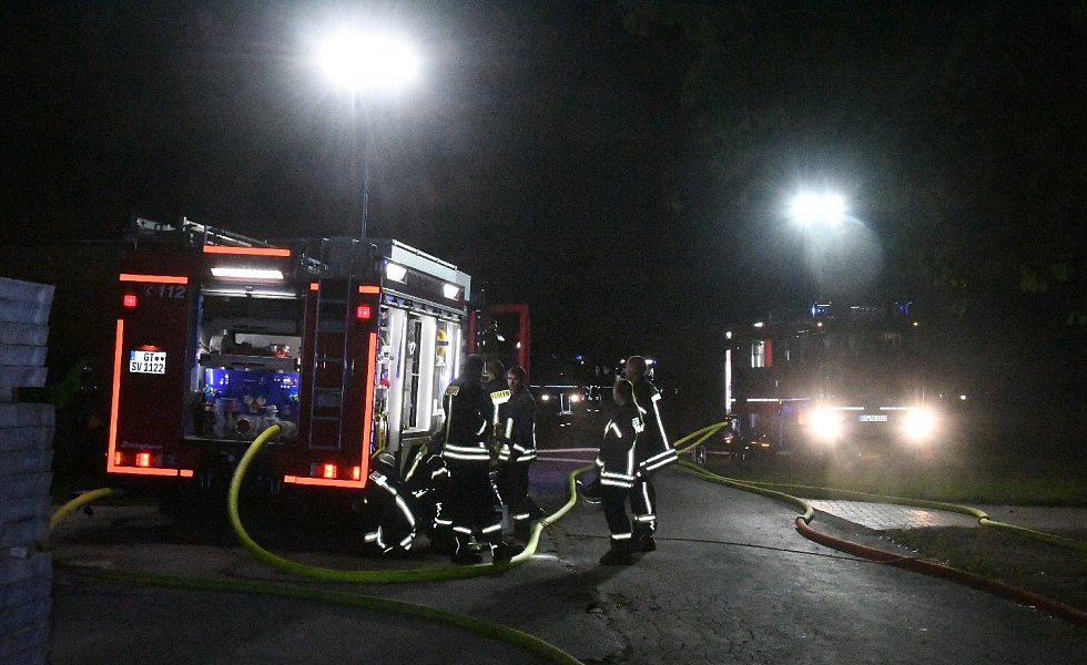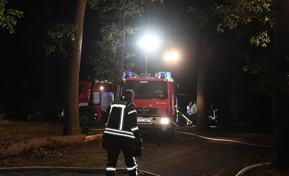 „Wir haben zunächst eine Riegelstellung eingerichtet, um die nicht betroffenen Gebäude zu schützen", so der Feuerwehrchef. Parallel wurde eine rund 1.500 Meter lange Schlauchleitung zum Frankfurter Weg verlegt, wo ein Hydrant sowie ein Bohrbrunnen angezapft wurde. Aber nicht nur über die Schlauchleitungen, auch im Pendelverkehr der wasserführenden Fahrzeuge der benachbarten Löschzüge wurde ausreichend Löschwasser an die Brandstelle gebracht.