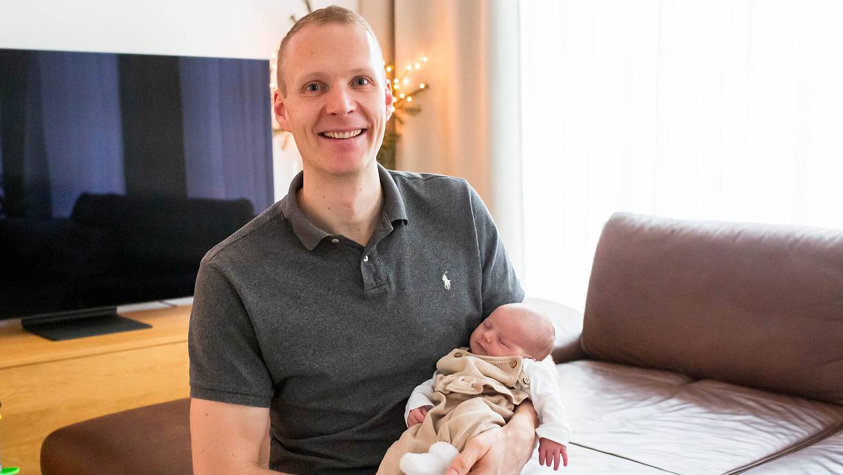 Der Versmolder Marcel Eggert hält Tochter Annalia im Arm. Die beiden freuen sich nach einer turbulenten Geburt auf Weihnachten. | © Andre Schneider